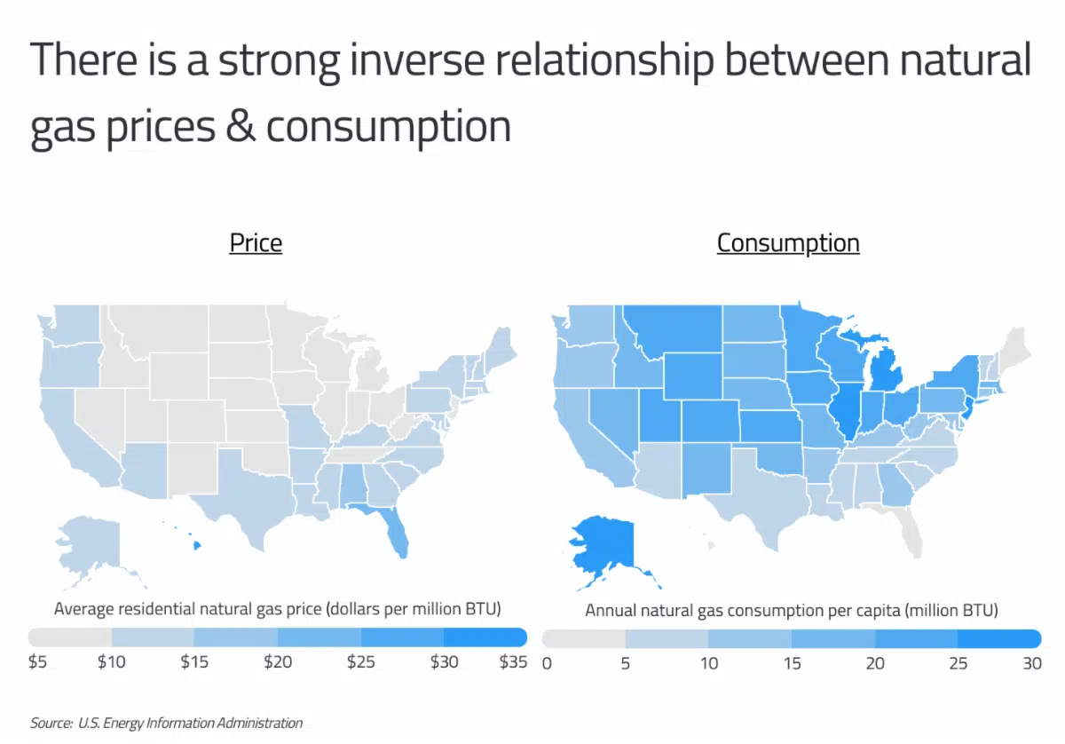- Average residential natural gas price (dollars per million BTU): $10.40