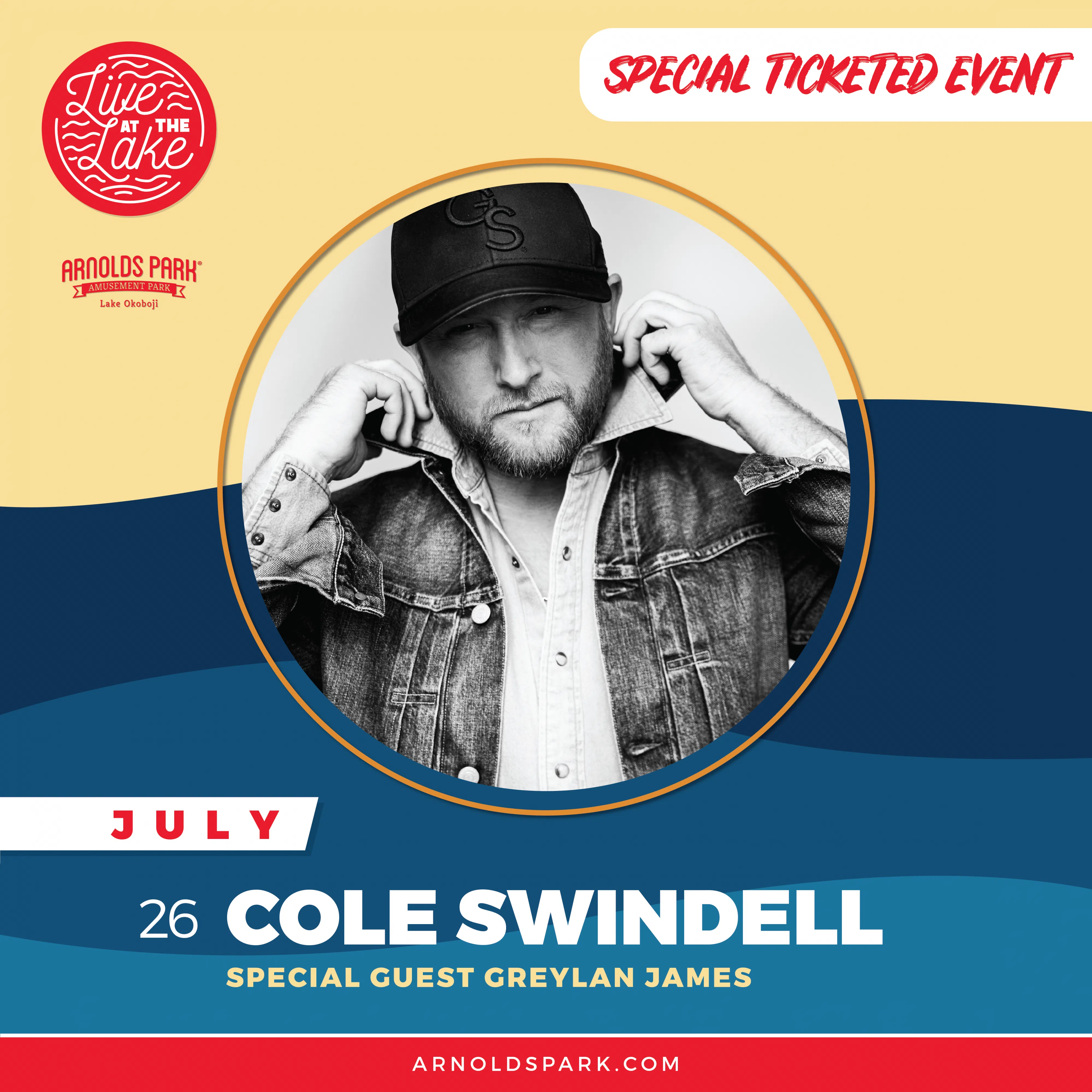 12 #1 songs, Grammy-nominated Cole Swindell is coming to Arnold's Park - Live at The Lake on Friday July 26th.
